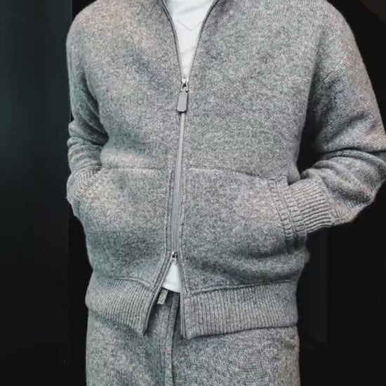 Pallaband™️ Sport Style High-Neck Zipper Thick 100% Wool Knit Cardigan Set