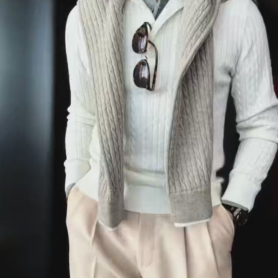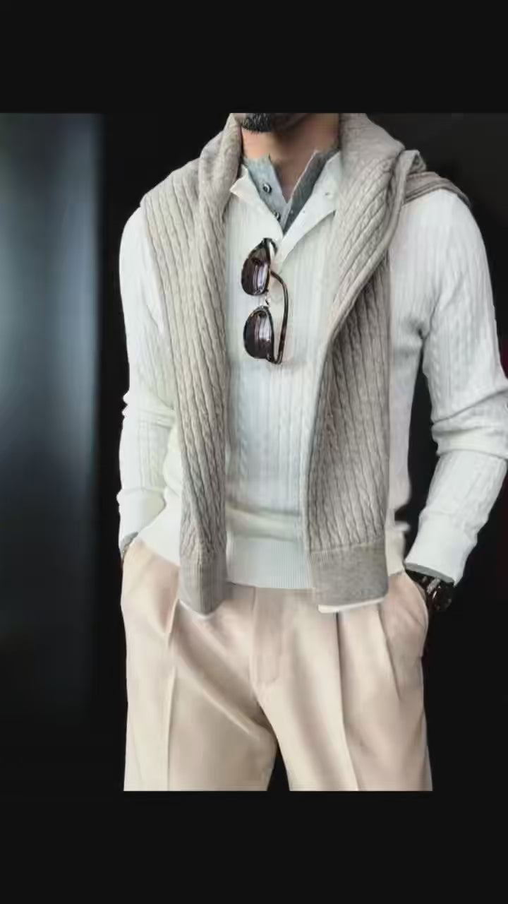 Pallaband™️ Unisex Henley collar sweater luxury loose pullover twist design American vintage knitwear