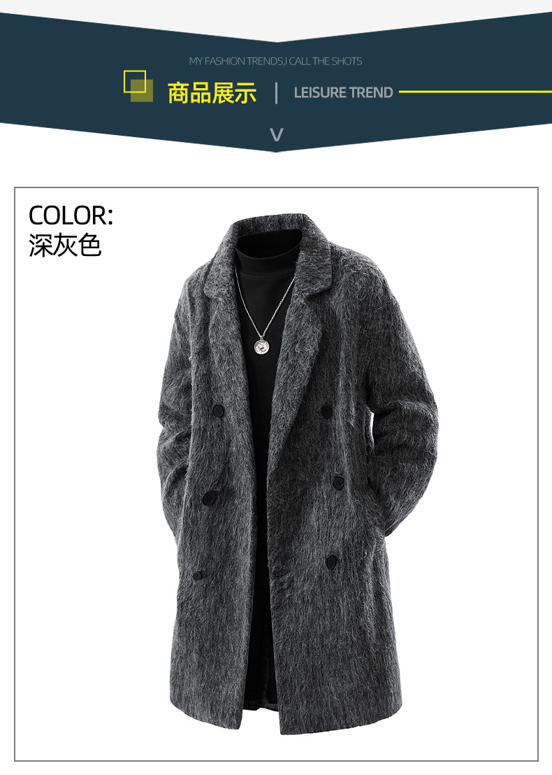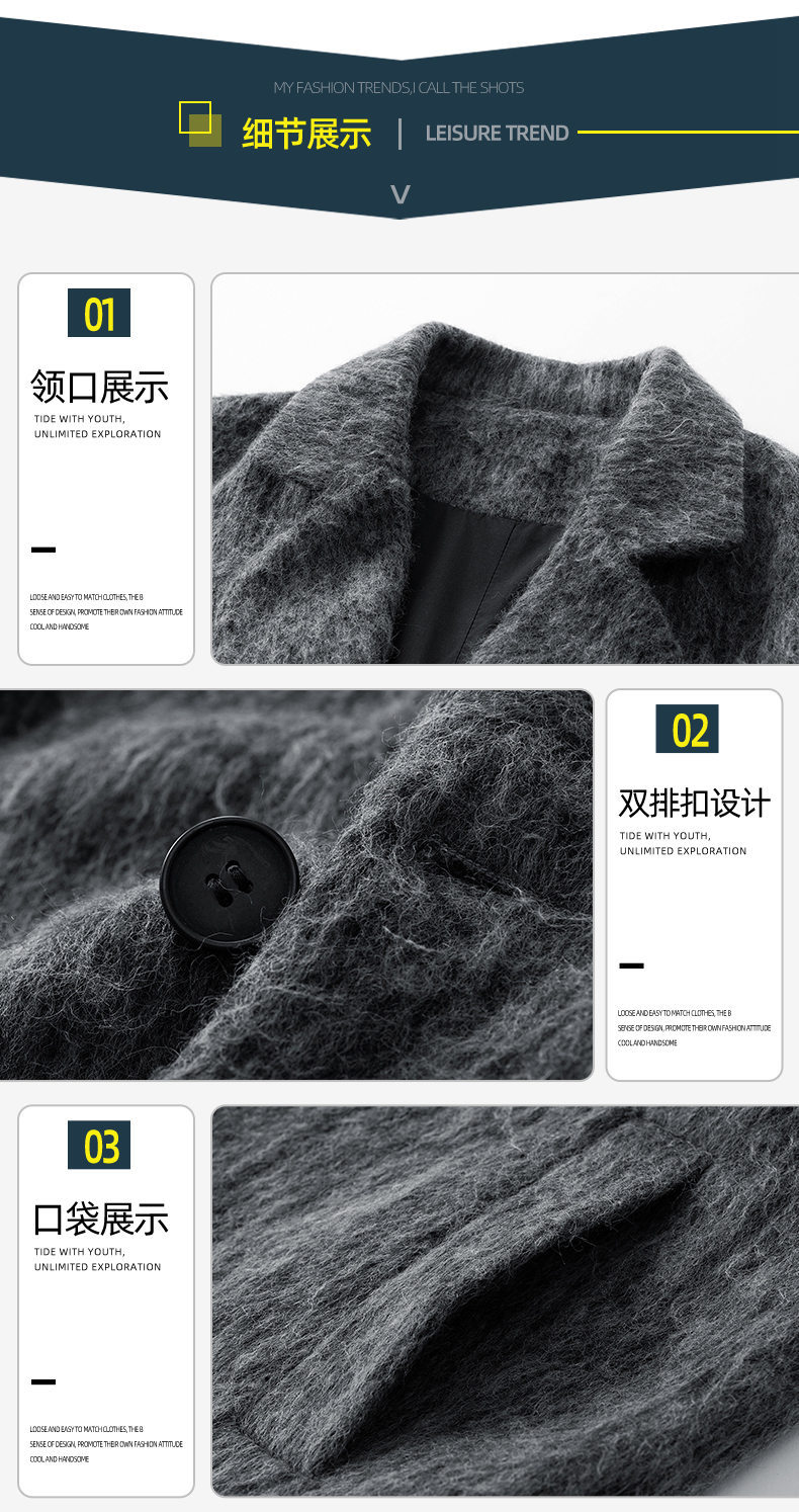 Fabric: This men's double-sided woolen coat is crafted from high-quality wool, providing exceptional warmth and comfort for the autumn and winter seasons. The rich texture of the wool not only ensures durability but also offers a luxurious feel against the skin. The coat's breathable fabric allows for easy layering, making it perfect for transitioning from chilly outdoor conditions to warmer indoor environments while maintaining a polished appearance.