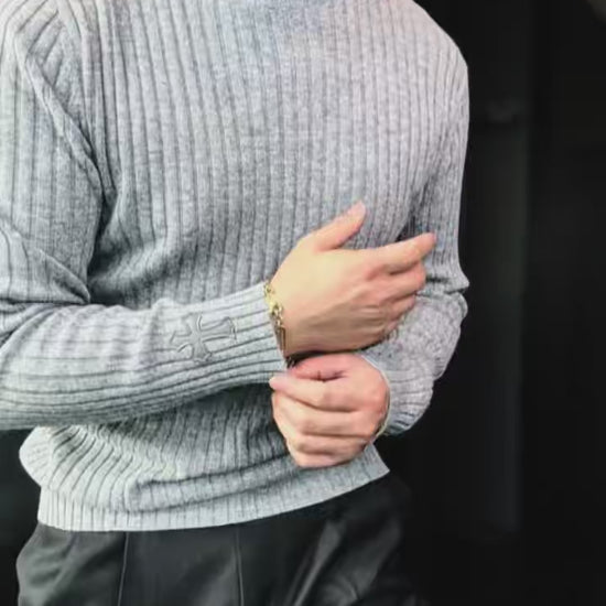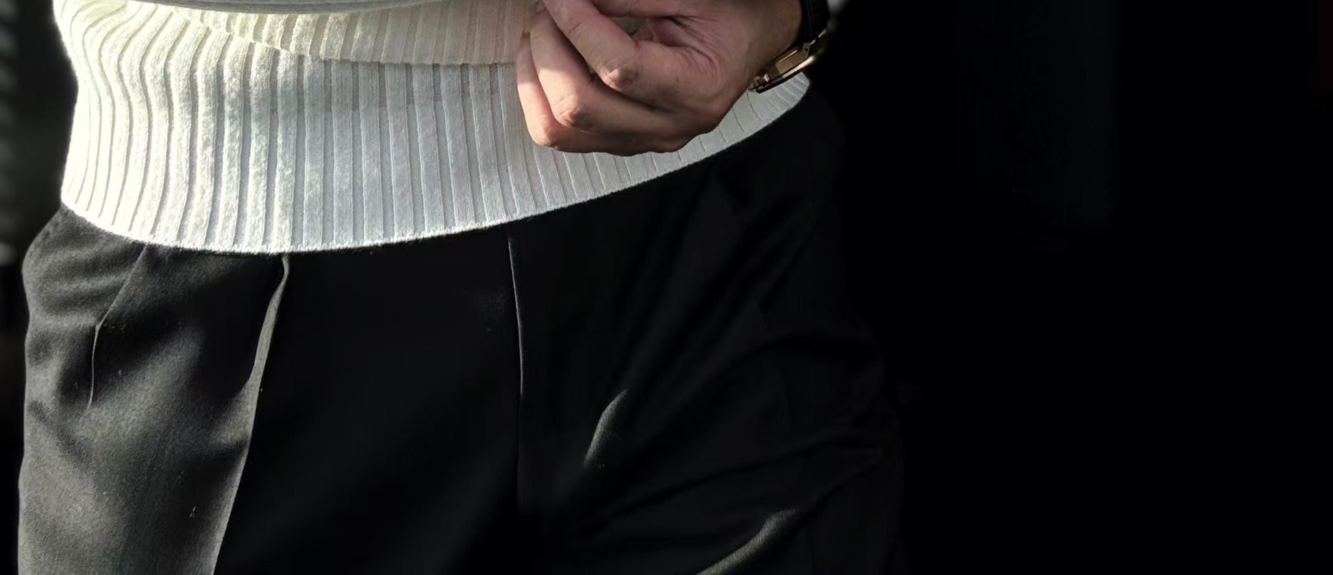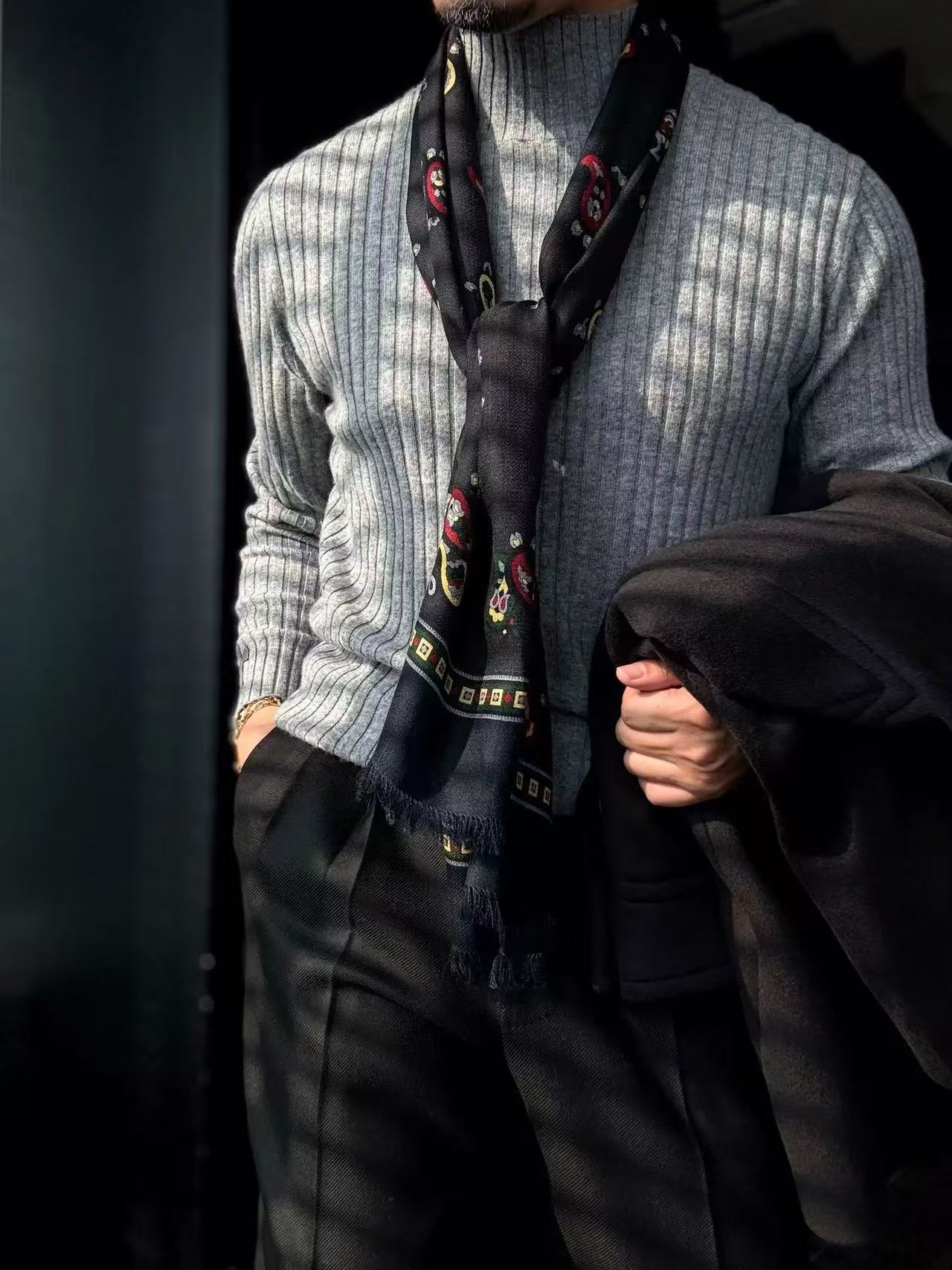 Works with a blazer or a casual jacket. The vertical knit gives structure and the overall vibe is minimal and sharp.